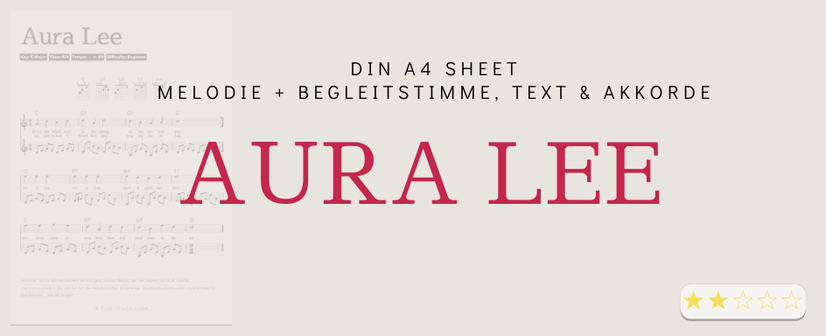 Übersichtliches Lead Sheet zu Aura Lee für Gitarre, Gesang und Begleitung.