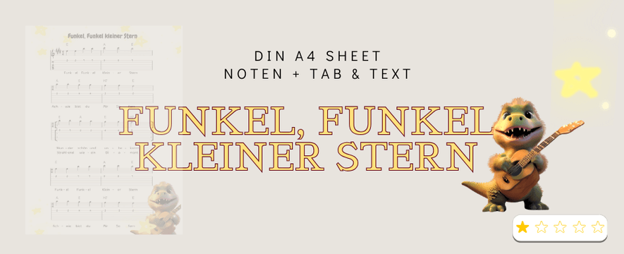 Funkel, Funkel kleiner Stern. Ein schönes Einsteigerlied für Kinder. Eine tolle Griffübung auf der Hohen e-Saite, um sich an die Bünde und das Greifen zu gewöhnen.